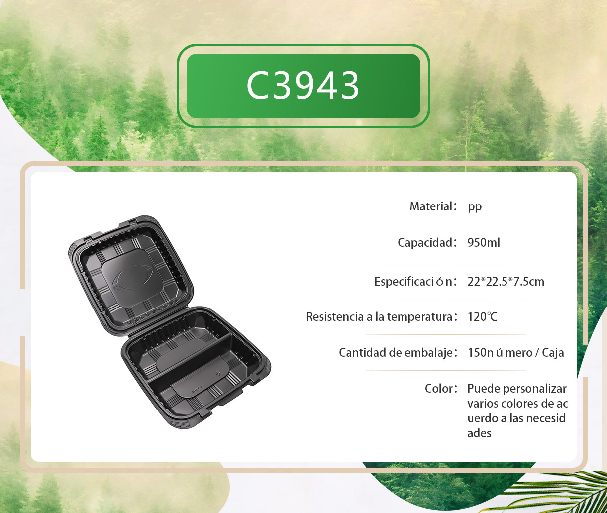 Caja de almuerzo sellada PP desechable caja de comida rápida cuadrada negra